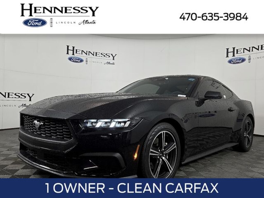 We are proud to offer you this Exceptional 2024 Ford Mustang EcoBoost! It comes well appointed, is exceptionally clean, and has undergone a rigorous mechanical and cosmetic reconditioning process. Come see why our cars are a cut above! Options include: Clean CARFAX. CARFAX One-Owner. Odometer is 6492 miles below market average! Priced below KBB Fair Purchase Price! Welcome to Hennessy Ford Lincoln Atlanta we offer one of the largest selection of New & Lincoln Certified Pre-Owned vehicles in the entire country, accompanied with outstanding deals, competitive financing, aggressive trade values, and unparalleled service! Complete the entire process from the comfort of your home and let us handle the rest! Nationwide shipping is available, and Hennessy customers are eligible for Complimentary Loaners upon request! We are a proud part of the Hennessy family, the most trusted name for luxury vehicles in metro Atlanta for over 50 years! Hennessy operates 11 dealerships in the Atlanta market, which provides us with access to an over 2,500 vehicle network! No matter what you are interested in, we can help!