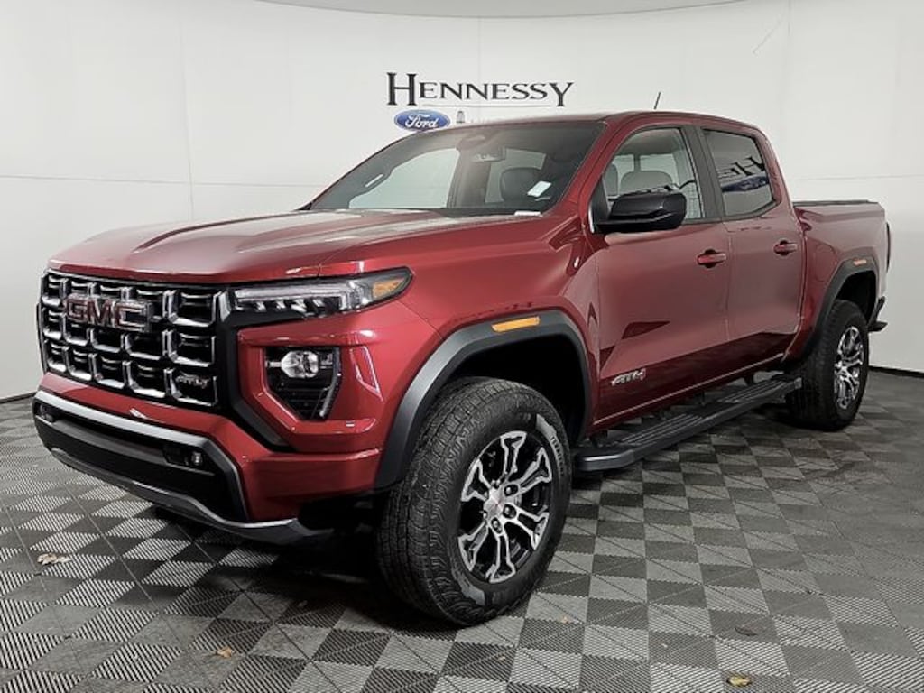 4WD, 120-Volt Bed Mounted Power Outlet, 2 1st Row USB Charge/Data Ports, 2 Rear USB Ports in Center Console (Charge-Only), 4-Wheel Disc Brakes, 6-Speaker Audio System Feature, 6-Way Power Passenger Seat Adjuster, 8-Way Power Driver Seat Adjuster, ABS brakes, AM/FM radio, AT4 Premium Package, Auto High-beam Headlights, Automatic Emergency Braking, Automatic Locking Rear Differential, Automatic Stop/Start, Brake assist, Canyon Pro Safety, Canyon Safety Plus Package, Driver & Front Passenger Illuminated Visors, Driver & Front Passenger Ventilated Seats, Driver Memory, Driver Seatback Map Pocket, Dual-Zone Automatic Air Conditioning, Electronic Stability Control, EZ-Lift & Lower Tailgate, Following Distance Indicator, Forward Collision Alert, Front LED Fog Lamps, Front Pedestrian & Bicyclist Braking, Front wheel independent suspension, Hard Folding Truck Bed Cover (LPO), Heated door mirrors, Heated Driver & Front Passenger Seats, Heated Power-Adjustable Outside Mirrors, Heated Steering Wheel, Inside Rear-View Auto-Dimming Mirror, IntelliBeam Automatic High Beam On/Off, Interior Overhead Courtesy Light w/Dual Reading Lamp, Lane Keep Assist w/Lane Departure Warning, Manual Rear-Sliding Window, MultiStow Tailgate, Perforated Leather-Appointed Seat Trim, Power Driver Lumbar Control Seat Adjuster, Power driver seat, Power Passenger Lumbar Control Seat Adjuster, Preferred Equipment Group 4SG, Radio: 11.3" Diagonal Premium GMC Infotainment Sys, Rear Center Fold-Down Armrest w/2 Cupholders, Rear Cross Traffic Braking, Rear of Console 120-Volt Power Outlet, Rear-Window Electric Defogger, Remote Vehicle Starter System, Security system, SiriusXM w/360L, Speed control, Speed-sensing steering, Stop/Start System Disable Button Engine Control, Tailgate Keyed Cylinder Lock, Tilt & Telescopic Manual Steering Column, Ultrasonic Rear Park Assist, Wheels: 18" x 8.5" Dark Gray Machined Finish Alum, Wireless Apple CarPlay/Wireless Android Auto, Wireless Charging.