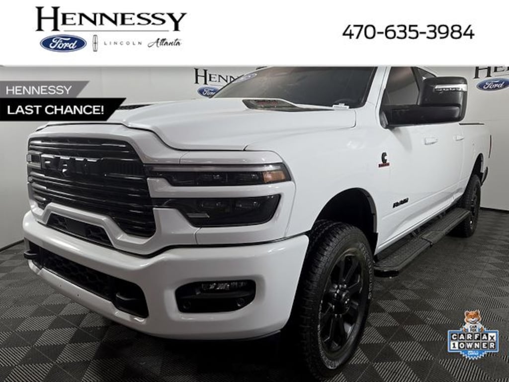 **Highly Equipped!**, **One Owner**Clean Carfax**, #1 Seat Foam Cushion, 115V Auxiliary Rear Power Outlet, 14.4" Touchscreen Display, 17 Speaker harman/kardon Premium Sound, 2 Way Rear Headrest Seat, 2nd Row In Floor Storage Bins, 4 Way Front Headrests, 4-Wheel Disc Brakes, 4G LTE Wi-Fi Hot Spot, 5th Wheel/Gooseneck Towing Prep Group, ABS brakes, Active Lane Management System, Adaptive Steering System, Alexa Built-In, Anti-Spin Differential Rear Axle, Apple CarPlay, Apple CarPlay/Android Auto, Auto Adjust In Reverse Exterior Mirrors, Auto Dim Exterior Mirror, Auto High Beam Headlamp Control, Auto Power-Folding Mirrors, Auto-Dimming Exterior Passenger Mirror, Auto-dimming Rear-View mirror, Black Exterior Mirrors, Black Exterior Truck Badging, Body Color Grille Surround, Brake assist, Bucket Seats, Chrome Exterior Mirrors, Cold Weather Group, Compass, Connected Travel & Traffic Services, Connectivity - US/Canada, CTR Stop Lamp w/Cargo View Camera, Disassociated Touchscreen Display, Drowsy Driver Detection, Dual front impact airbags, Dual Wireless Charging Pad, Electronic Stability Control, Emergency Vehicle Alert System (EVAS), Engine Block Heater, Exterior Mirrors Courtesy Lamps, Exterior Mirrors w/Heating Element, Exterior Mirrors w/Memory, Exterior Mirrors w/Supplemental Signals, Foam Bottle Insert (Door Trim Panel), Folding Flat Load Floor Storage, Forward & Reverse Utility Lights, Front anti-roll bar, Front fog lights, Front Seat Back Map Pockets, Full Length Upgraded Floor Console, Fully automatic headlights, Global Telematics Box Module (TBM), Gloss Black Grille Billets/Accents, Google Android Auto, GPS Antenna Input, GPS Navigation, HD Radio, Heated Front Seats, Heated Steering Wheel, High Back Seats, Integrated Voice Command w/Bluetooth, Laramie Level 2 Plus Equipment Group, Leather Trimmed Bucket Seats, LED Bed Lighting, Mirror Running Lights, MOPAR Deployable Bed Step, MOPAR Spray In Bedliner, MOPAR Winter Front Grille Cover, Navigation System, Night Edition, Occupant sensing airbag, Off-Road Info Pages, ParkView Rear Back-Up Camera, Power 2-Way Driver Lumbar Adjust, Power 2-Way Passenger Lumbar Adjust, Power Adjust 8-Way Driver Seat, Power Adjust 8-Way Front Passenger Seat, Power Adjust Mirrors, Power Adjustable Convex Aux Mirrors, Power Adjustable Pedals w/Memory, Power Deployable Running Boards, Power Heated Fold Telescopic Mirrors w/Memory, Power Telescoping Mirrors, Quick Order Package 24H Laramie, Radio: Uconnect 5 Nav w/14.4" Display, Rain Sensitive Windshield Wipers, Rear 60/40 Folding Seat, Remote keyless entry, Remote Tailgate Release, Security system, Selectable Tire Fill Alert, SiriusXM Radio Service, SiriusXM w/360L, Speed control, Sport Performance Hood, Steering wheel mounted audio controls, Traction control, Traffic Sign Recognition, Trailer Tow Pages, Wheels: 20" x 8.0" Black Painted Aluminum.